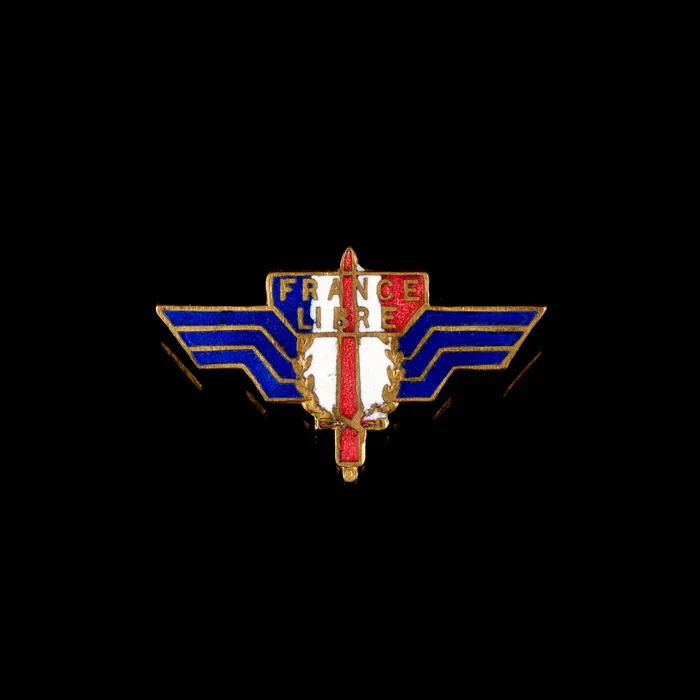 • Les insignes des Forces françaises libres (FFL) et des Forces navales françaises libres (FNFL) symbolisent l’appel du 18 juin 1940 et le combat pour la libération.