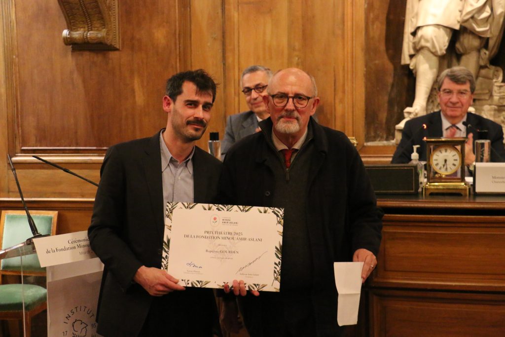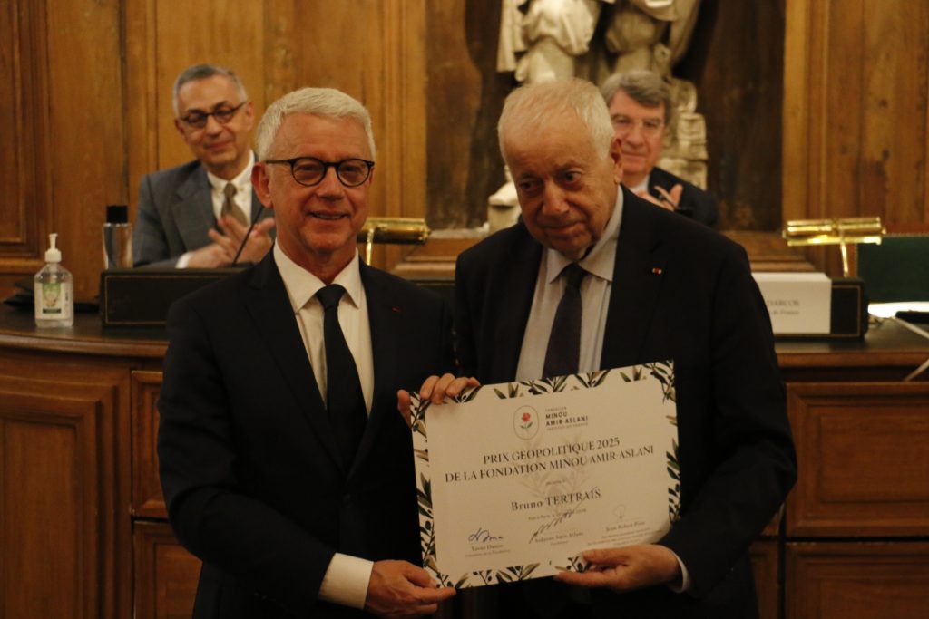Le 20 janvier 2026, la Fondation Minou Amir-Aslani a eu l’honneur de remettre ses Prix Géopolitique et Théâtre 2025 dans le cadre solennel de la Grande salle des séances de l’Institut de France, en présence du Chancelier Xavier Darcos et du fondateur de la Fondation, Maître Ardavan Amir-Aslani.